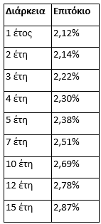 Ενδεικτικό είναι ότι μια εταιρεία μπορεί να εξασφαλίσει ετήσιο Euribor 2,22% για τρία έτη, 2,38% για πέντε έτη, 2,51% για επτά έτη, 2,69% για δέκα έτη και 2,87% για δεκαπέντε έτη!