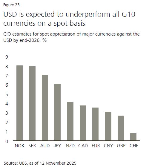 - Προσθήκη σε μετοχές: Οι υποστηρικτικές οικονομικές συνθήκες οφείλουν να ενισχύσουν τις παγκόσμιες μετοχές, οι οποίες αναμένεται να αυξηθούν κατά περίπου 15% έως το τέλος του 2026. Η ισχυρή ανάπτυξη των ΗΠΑ και η διευκολυντική δημοσιονομική και νομισματική πολιτική ευνοούν την τεχνολογία, τις επιχειρήσεις κοινής ωφέλειας, την υγειονομική περίθαλψη και τις τράπεζες, με πιθανά κέρδη στις ΗΠΑ, την Κίνα, την Ιαπωνία και την Ευρώπη.