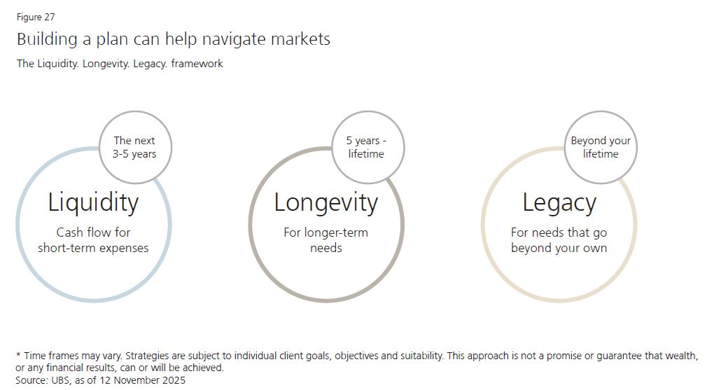 Στην έκθεση Year Ahead 2025-2026, η Διεύθυνση Επενδύσεων της UBS Global Wealth Management σκιαγραφεί όσα ενδέχεται να περιμένουν οι επενδυτές κατά τη νέα χρονιά, πού να στραφούν για ανάπτυξη και έσοδα, καθώς και γιατί είναι σημαντική η διαφοροποίηση για τη δημιουργία ενός ισχυρού χαρτοφυλακίου.